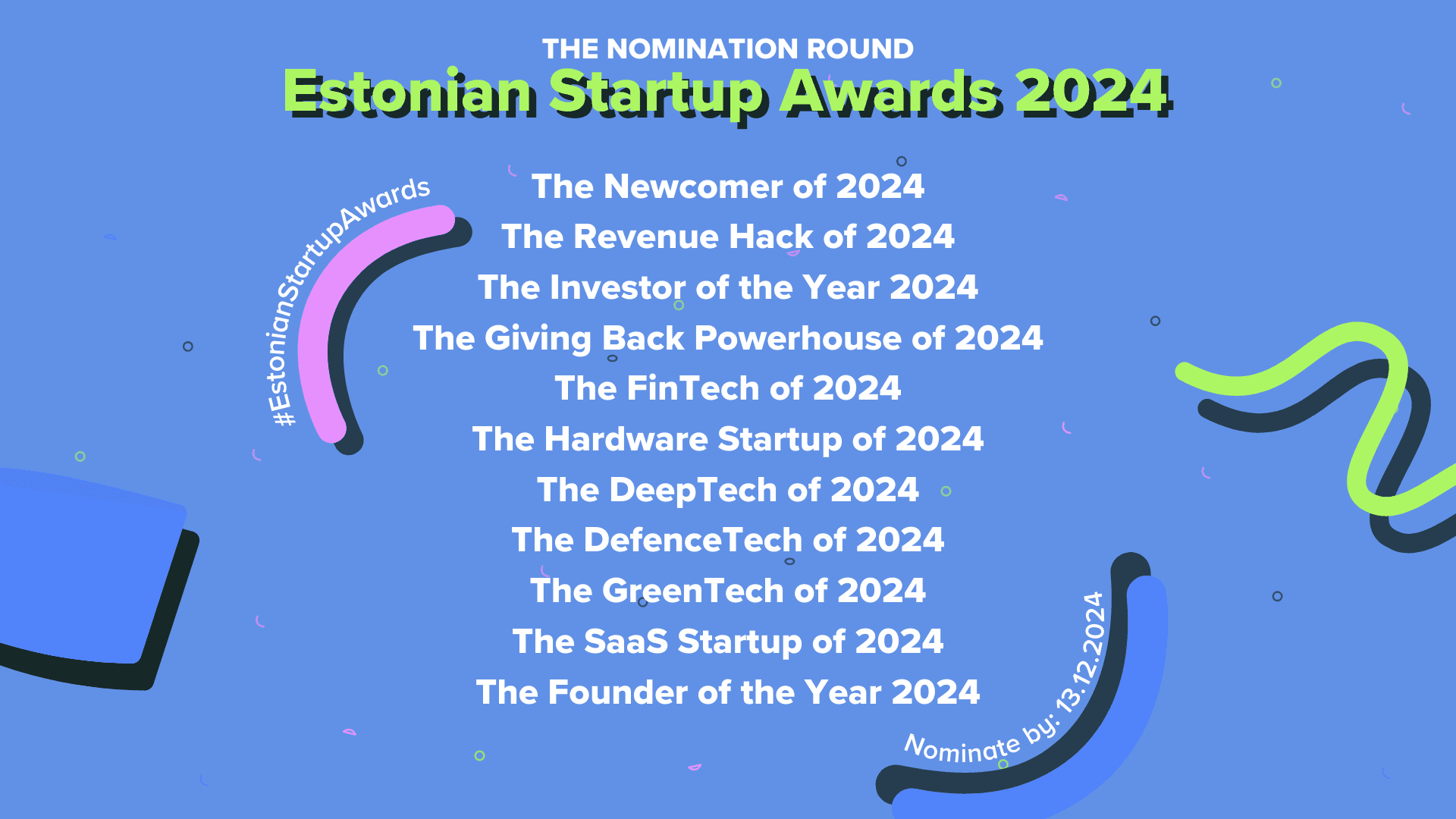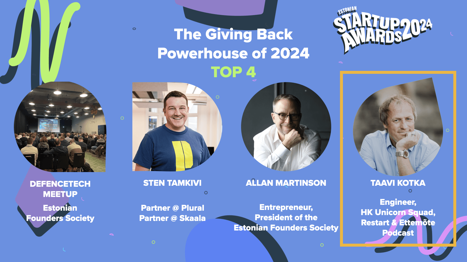 The five main categories for 2024 were Newcomer of the Year, Investor of the Year, Founder of the Year, Revenue Hack of the Year and Giving Back Powerhouse of the Year. The special categories recognized the Estonian startups that focus on solving important global problems, operating in the fields of Deep Tech, Green Tech and Defence Tech. In addition, the best performers in the fast-growing fields of Fin Tech, Hardware and SaaS were also recognized.